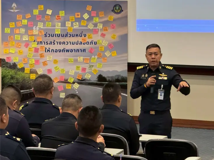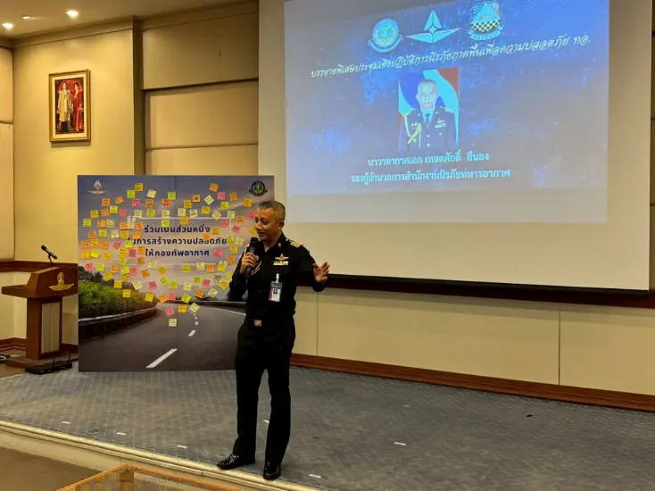 นาวาอากาศเอก เทอดศักดิ์ ยืนยง รองผู้อำนวยการสำนักงานนิรภัยทหารอากาศ เป็นประธานพิธีเปิดโครงการประชุมเชิงปฏิบัติการนิรภัยภาคพื้นเพื่อความปลอดภัยกองทัพอากาศ ณ กองบิน ๑ โดยมี นาวาอากาศเอก เบญจพล เขียวชอุ่ม เสนาธิการ กองบิน ๑ ให้การต้อนรับ เมื่อ ๒๔ พฤศจิกายน ๒๕๖๘